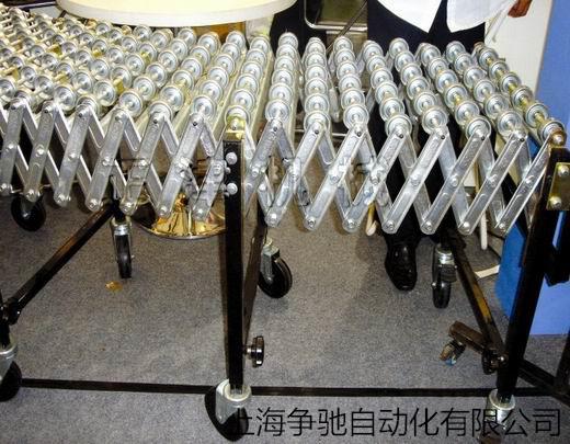 Telescopic conveyor roller conveyor is using scalable components to do frame. The body can be free to change at any angle and leg height can be adjusted, the lower part is provided with casters can move, casters with brakes. The rotating parts with single row roller, double row roller and roller skate wheels, generally with the diameter of 38mm, 50mm.