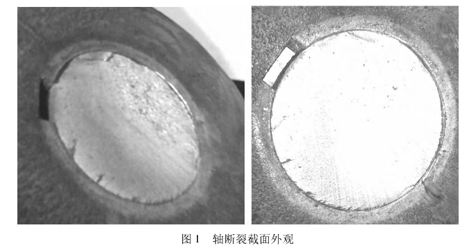3#、4#皮帶輸送機(jī)設(shè)備配置相同,電機(jī)軸斷裂部位相同,斷裂截面形狀相似,分析軸斷裂截面外觀。